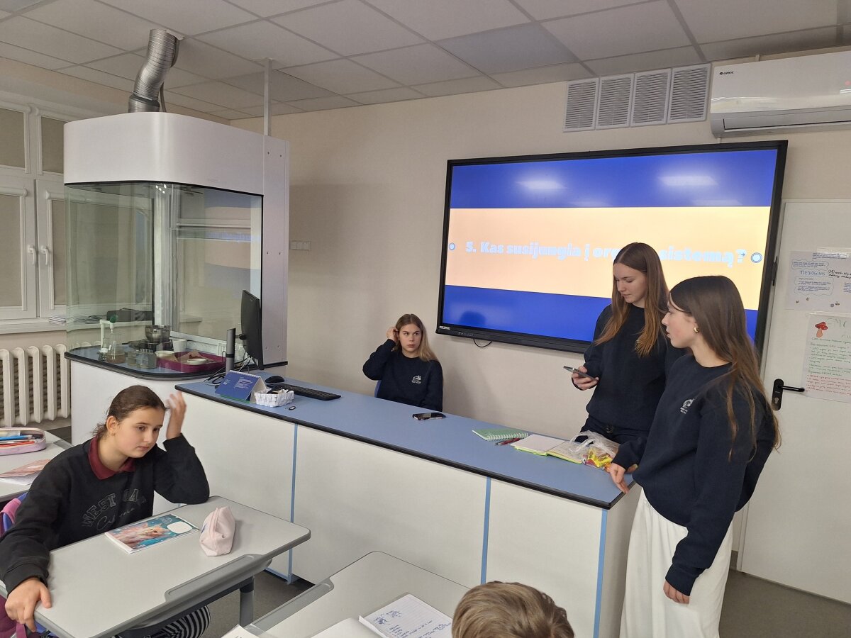 Gruodžio 1 d. mūsų progimnazijoje svečiavosi buvusios mokinės: Goda, Luknė ir Žemyna, dabar besimokančios Jeronimo Ralio gimnazijos 1-oje klasėje. Gimnazistės 5b klasės mokiniams vedė gamtos mokslų įdomią pamoką apie ląsteles, audinius ir organus.