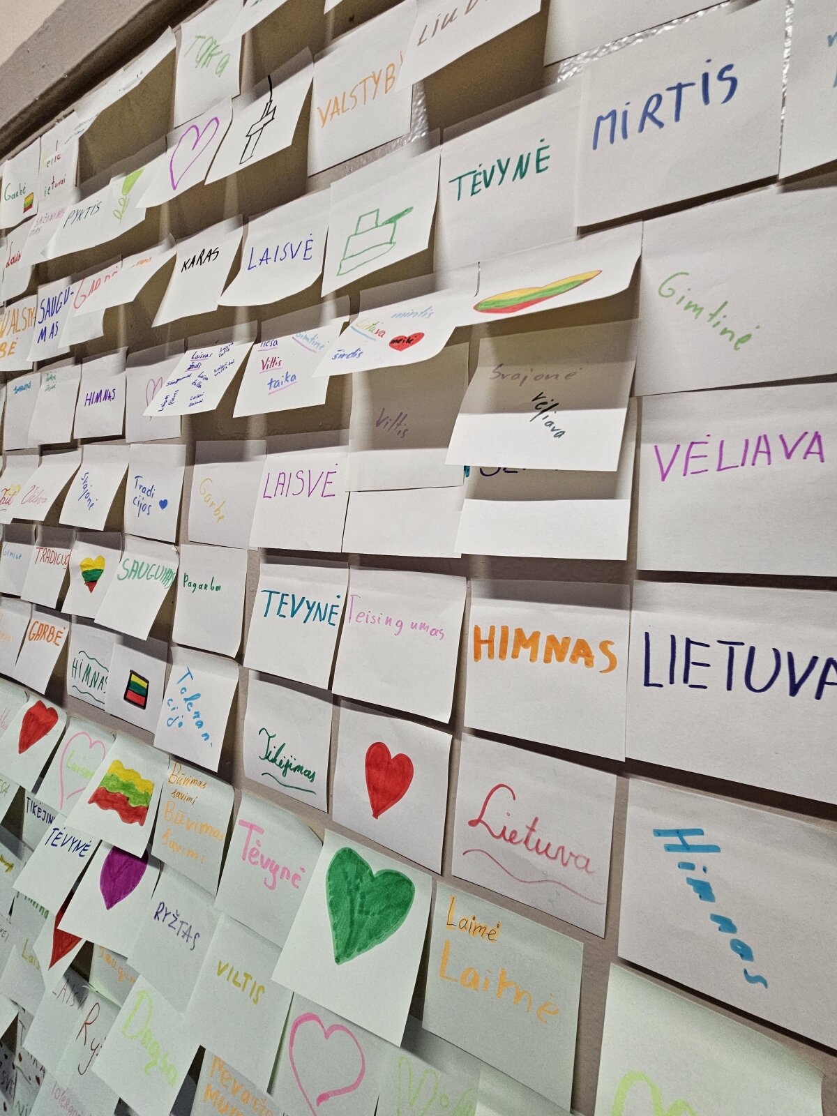 Vėliau klasėse vyko nuoširdūs pokalbiai ir kūrybinės veiklos. Mokiniai piešė piešinius, žiūrėjo istorinius dokumentinius kadrus bei dalinosi savo mintimis apie drąsą ir pilietiškumą. Kiekvienas turėjo progą išsakyti, ką jam reiškia laisvė, o savo padėkos žodžius ir gražiausius linkėjimus Lietuvai mokiniai užrašė laiškuose bei minčių žemėlapiuose. Šis šviesus ir prasmingas rytas dar kartą priminė, kad mūsų istorija yra gyva tol, kol ją prisimename ir branginame.