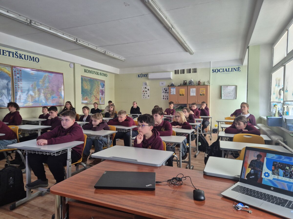 Mūsų progimnazijoje praūžė „Skaitmeninė banga“ – renginys, kvietęs mokinius atsakingai ir smalsiai pažinti technologijų pasaulį. Jo metu 5-8 klasių mokiniai dalyvavo paskaitoje „Mokomės draugauti su technologijomis“: kartu su vaizdo operatoriumi ir profesionaliu dronistu Sauliumi Balčiūnu lavino dronų valdymo įgūdžius ir sužinojo, kaip kuriamas šiuolaikinis vaizdo turinys. Taip pat su mokiniais susitiko Pasaulio robotikos čempionato vienas iš nugalėtojų, Vilniaus licėjaus robotikos komandos kapitonas Povilas Kulis, kuris dalijosi patirtimi apie robotų kūrimą, valdymą ir dalyvavimą čempionatuose.