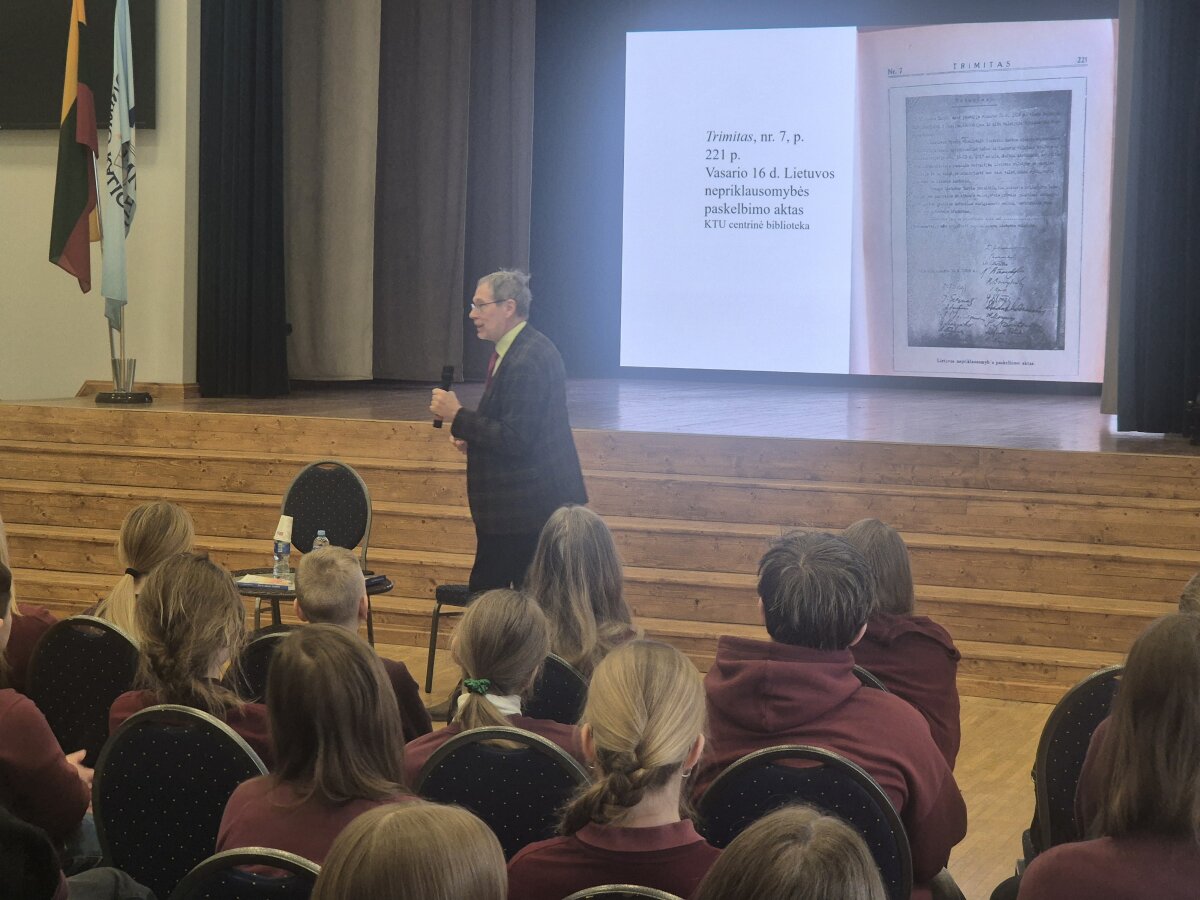 Mūsų progimnazijos septintų klasių mokiniai vyko į Jeronimo Ralio gimnaziją, kur turėjo išskirtinę galimybę susitikti su chemiku, tačiau plačiajai visuomenei labiau žinomu kaip istoriku – Liudu Mažyliu. Būtent jis Vokietijos archyvuose atrado Vasario 16-osios Nepriklausomybės Akto originalą – dokumentą, turintį ypatingą reikšmę Lietuvos valstybingumui ir istorinei atminčiai.