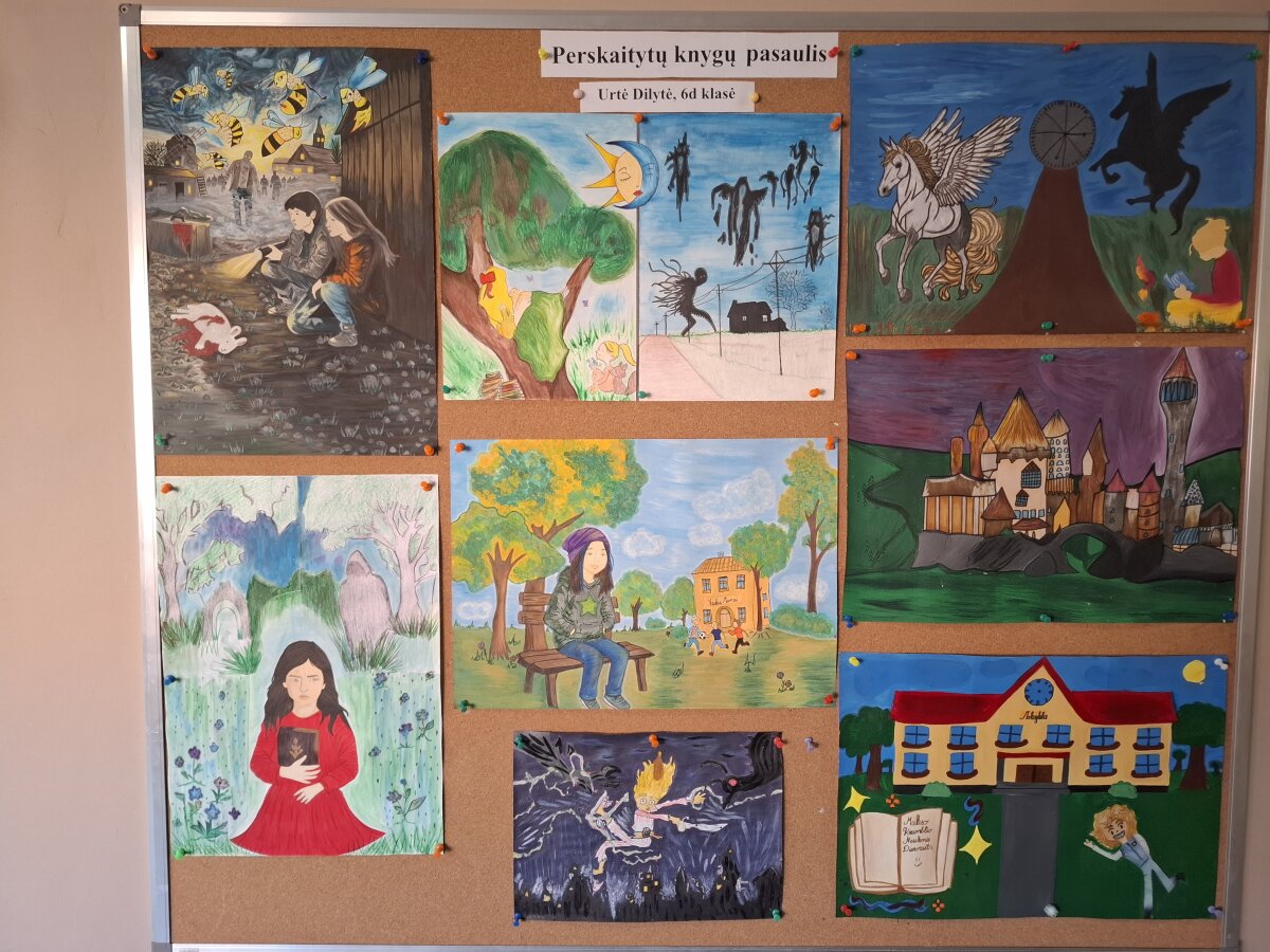 Kovo 16–20 dienomis mūsų progimnazijoje vyko ypatinga iniciatyva – Skaitymo savaitė, skirta Knygnešio dienai. Šios savaitės metu 5–8 klasių mokiniai buvo kviečiami dar kartą atrasti skaitymo džiaugsmą ir pasinerti į mėgstamų knygų pasaulį. Pirmadienį – Knygnešio dieną – mokiniai ketvirtos pamokos metu skaitė tekstus, kuriuos parengė lietuvių kalbos mokytojos. Tai buvo puiki galimybė ne tik lavinti skaitymo įgūdžius, bet ir susipažinti su įvairiais literatūros kūriniais. Tačiau didžiausio mokinių susidomėjimo sulaukė skaitymo pertraukos. Kiekvieną dieną po dviejų pamokų progimnazijos erdvės prisipildydavo tylos ir susikaupimo – mokiniai traukdavo iš kuprinių savo mėgstamas knygas ir skirdavo savo poilsio laiką skaitymui. Koridoriai, poilsio zonos ir klasės virto jaukiomis skaitymo erdvėmis. Antrojo aukšto fojė šį mėnesį galima pamatyti piešinių parodą „Perskaitytų knygų pasaulis“, jų autorė - 6d klasės mokinė Urtė Dilytė. Ji savo perskaitytas knygas įprasmino piešiniais. Bibliotekos iniciatyva buvo išrinkti aktyviausi skaitytojai: Meda Žviliūtė, 5a, Paulina Adamonytė, 8c, Ugnė Augaitė, 6b, Simona Jefimenkaitė, 6b, Viltarė Mančiunskaitė, 6b, Andrėjus Antanavičius, 6c, Renata Samokhval, 6c - jie apdovanoti padėkos raštais. Ši iniciatyva dar kartą parodė, kad skaitymas gali būti ne tik naudinga, bet ir maloni veikla, vienijanti bendruomenę. Skaitymo savaitė paskatino mokinius dažniau atsiversti knygą, dalintis įspūdžiais ir atrasti naujus literatūros pasaulius. Tikimės, kad ši graži tradicija taps kasmetinė.