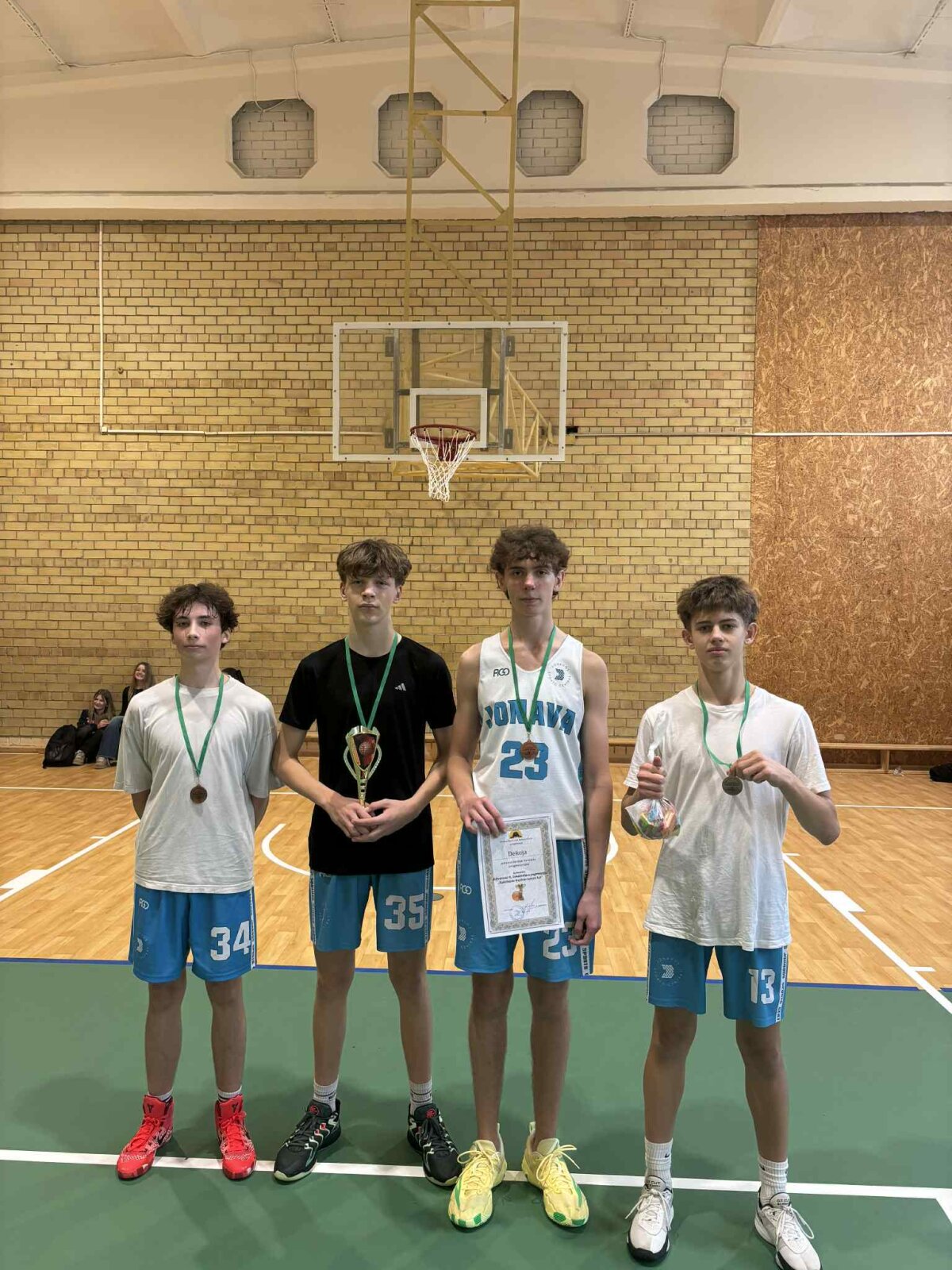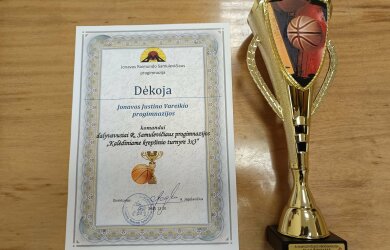 Gruodžio 10 dieną Jonavos Raimundo Samuliavičiaus progimnazijoje vyko 7-9 klasių 3x3 krepšinio kalėdinis turnyras. Po atkaklios ir įdomios kovos, mūsų mokyklos komanda (Jordanas Žalnerauskas – 8c, Armandas Paplauskas – 8b, Eimantas Butrimavičius – 8d, Rytis Dubininkas – 8a), užėmė III – ią vietą, nusileidusi tik Jonavos miesto gimnazijoms.