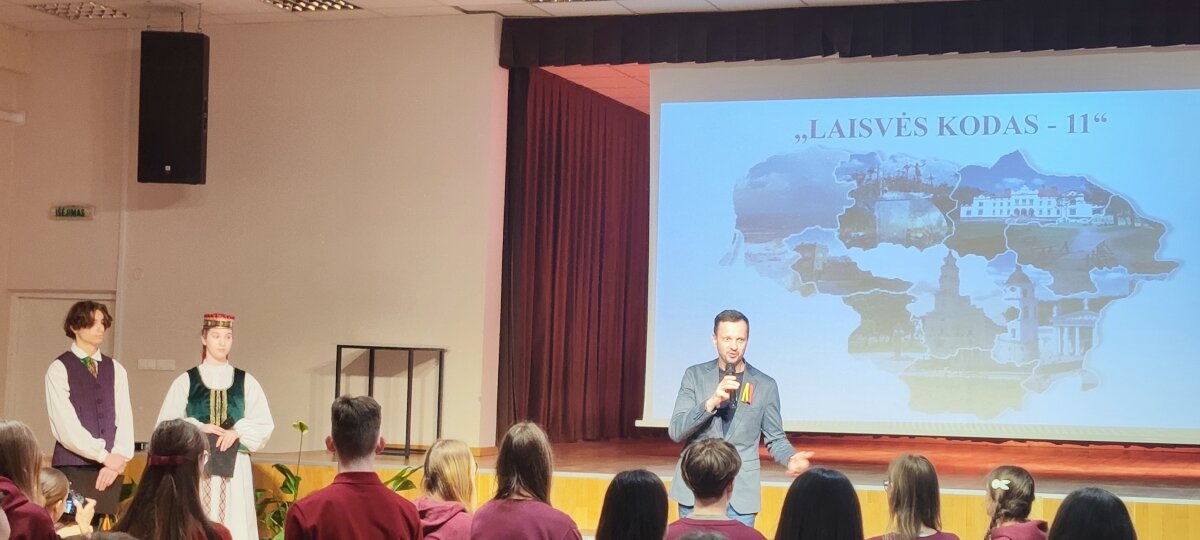 Senamiesčio gimnazijos direktorius Darius Mockus šiltai pasveikino gausiai susirinkusius mokinius, mokytojus, paminėjo, jog Lietuva išgyveno sunkų istorinį laikotarpį, dar okupantams esant Lietuvoje, Aukščiausios Tarybos-Atkuriamojo seimo nariai paskelbė atkūrę Lietuvos nepriklausomybę, matyt, jie taip pat turėjo tą „laisvės kodą“, kaip ir dabar už laisvę kovojanti ukrainiečių tauta. Direktorius dalyviams palinkėjo prisiminti ir atrasti Lietuvos meilės, laisvės kodą ir „nulaužti“ konkurso atsakymo kodus.