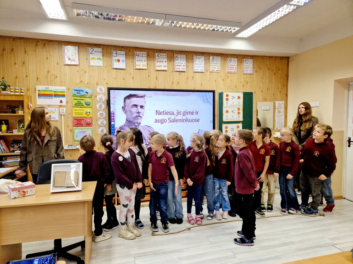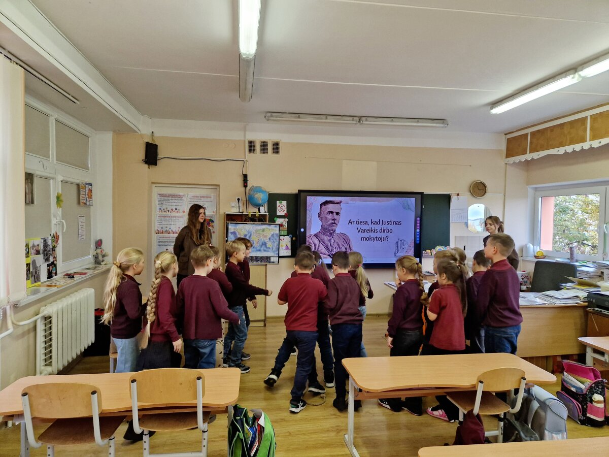 Tęsiame jau ne vienerius metus puoselėtą prasmingą tradiciją, progimnazijos pirmokus supažindinti su Justino Vareikio istorija. Būrelio „Kodas: kraštotyra“ nariai mažiesiems mokyklos mokiniams vedė pamokas apie žmogų, kurio vardą kasdien tariame eidami į mokyklą - Justiną Vareikį. Knygnešys, nepriklausomybės kovų dalyvis, šaulys, savo krašto ir Lietuvos patriotas - jis buvo ne tik istorijos veikėjas, bet ir vertybių žmogus. Pirmokams pasakojome ne tik apie jo darbus, bet ir apie tai, kas slypėjo už jų - meilė Lietuvai, gerumas, drąsa, nepakantumas neteisybei, noras padėti kitiems. Tai vertybės, kurias norime auginti Justino Vareikio progimnazijos bendruomenėje - kad jos taptų mūsų kasdienybės dalimi, mūsų susikalbėjimo ir bendrystės pagrindu.