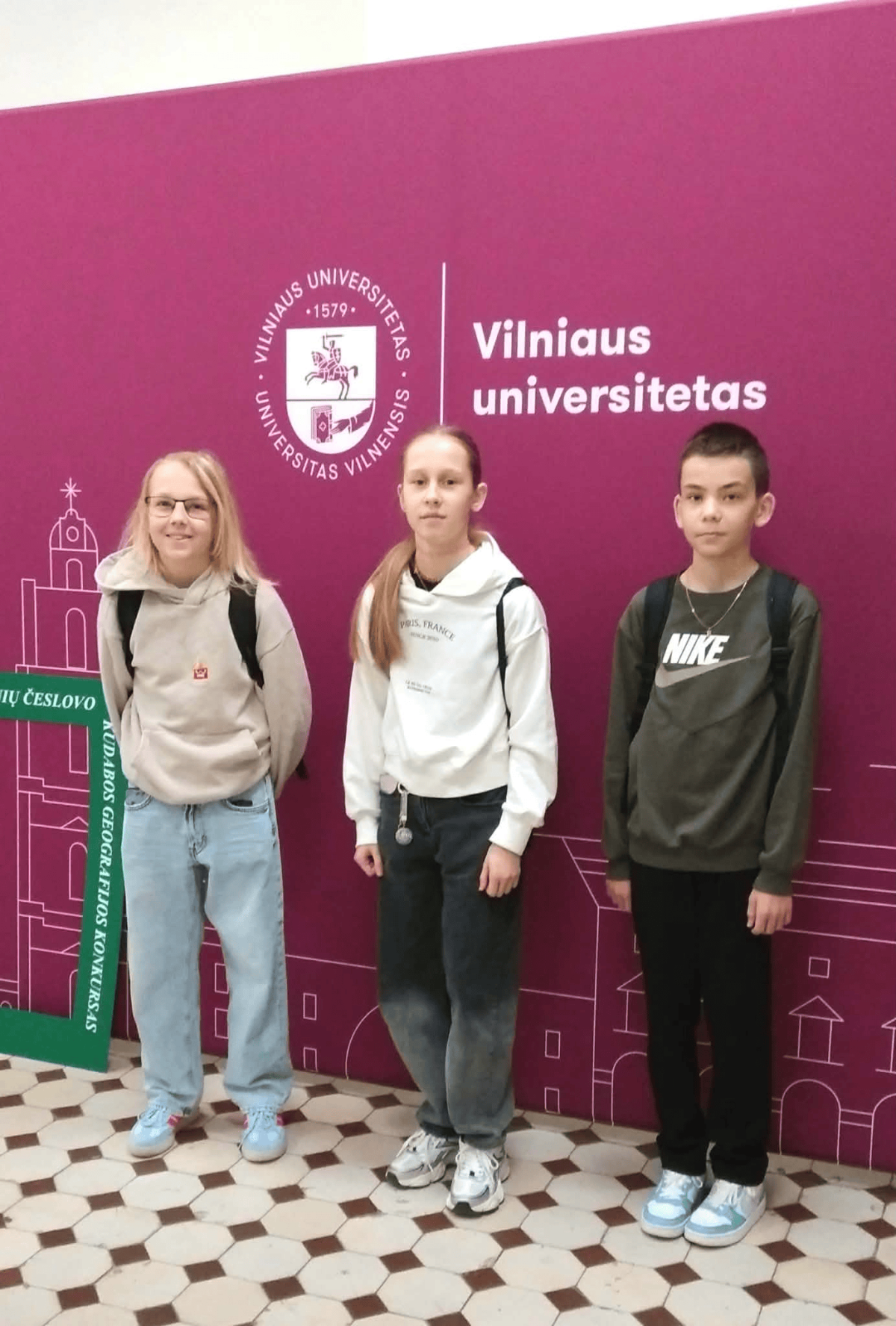 Kovo 28 dieną Vilniaus universiteto Geomokslų institute vyko XXV-asis Nacionalinis mokinių Č. Kudabos geografijos konkursas. Jame dalyvavo ir mūsų gimnazijos mokiniai – Kotryna Mikalauskaitė (6d kl.), Enrikas Jakutavičius (6b kl.) bei Gabrielius Klemanskas (7e kl.).