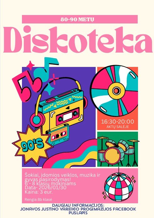Tada kviečiame TAVE į 6–8 klasių diskoteką!