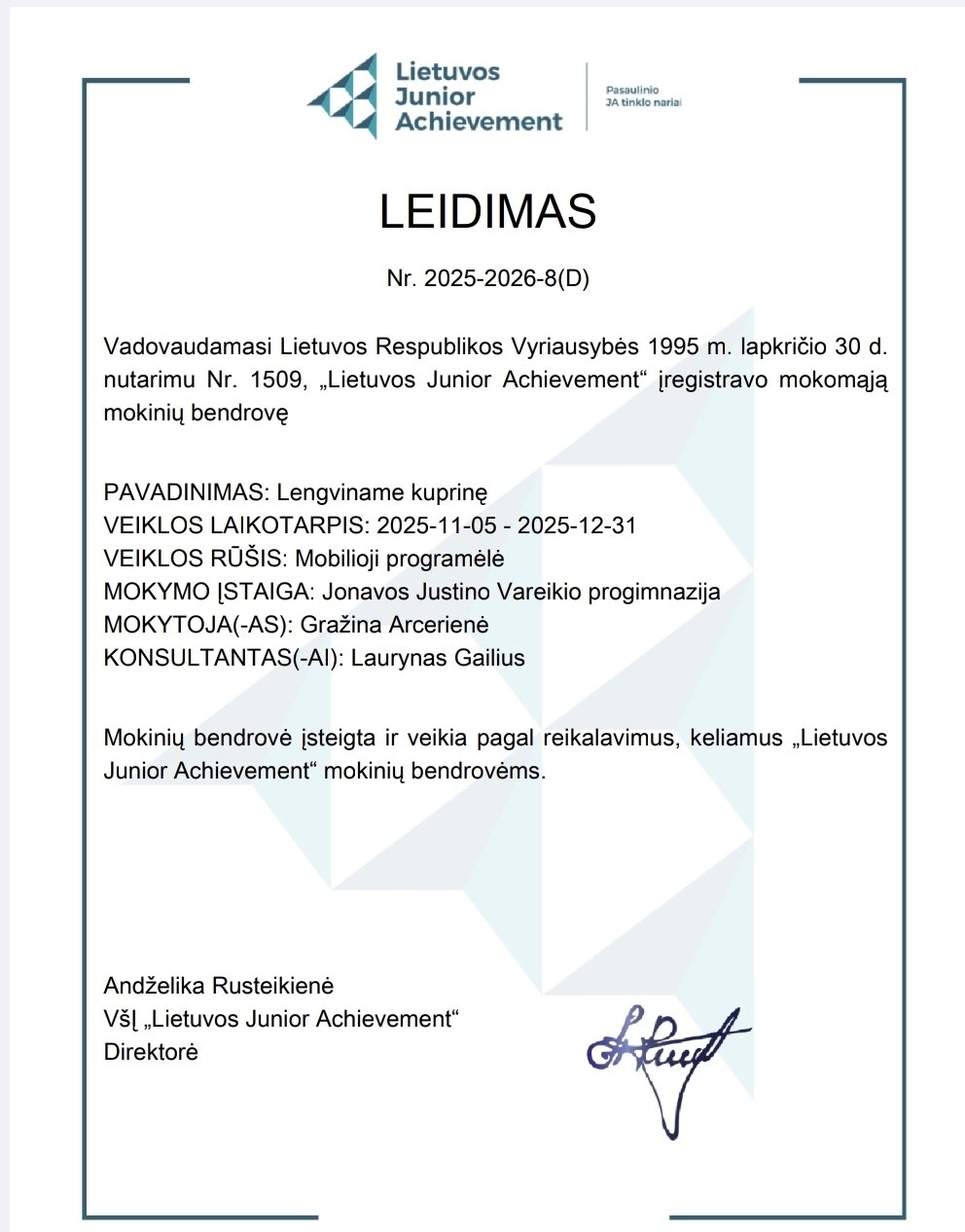 - Kategorija: Projektinė veikla