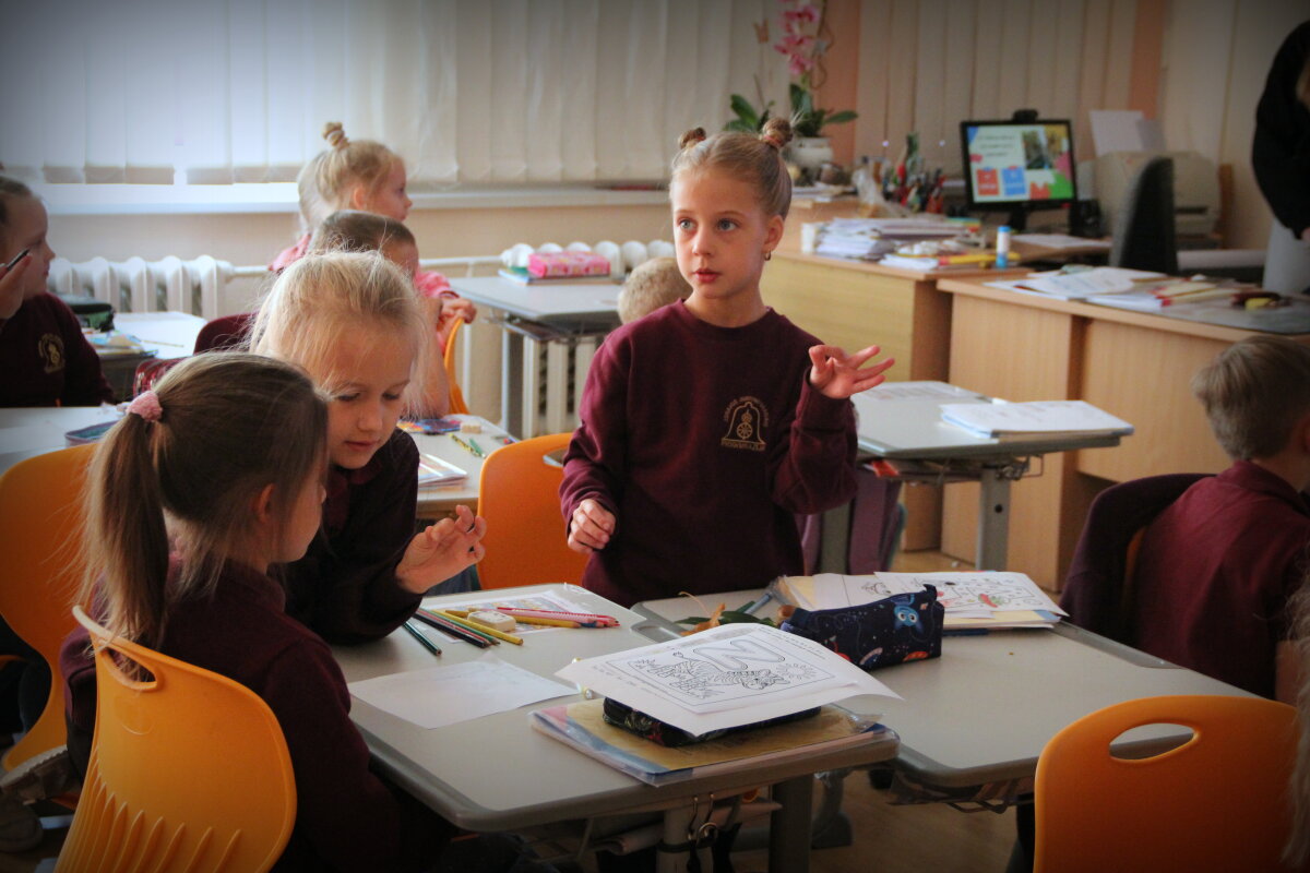7–8 klasių mokiniai vedė įdomias pamokėles PUG bei 1–3 klasių mokiniams. Mažieji buvo supažindinti su įvairiomis Europos kalbomis, mokėsi naujų žodžių, linksmai dainavo, žaidė, piešė. 6–8 klasių užsienio kalbų pamokose taip pat daug dėmesio skirta Europos kalbų dienai.