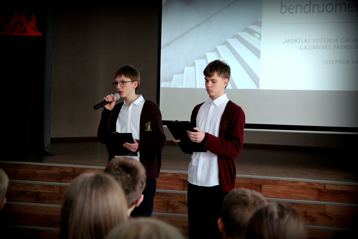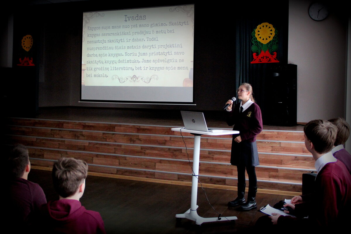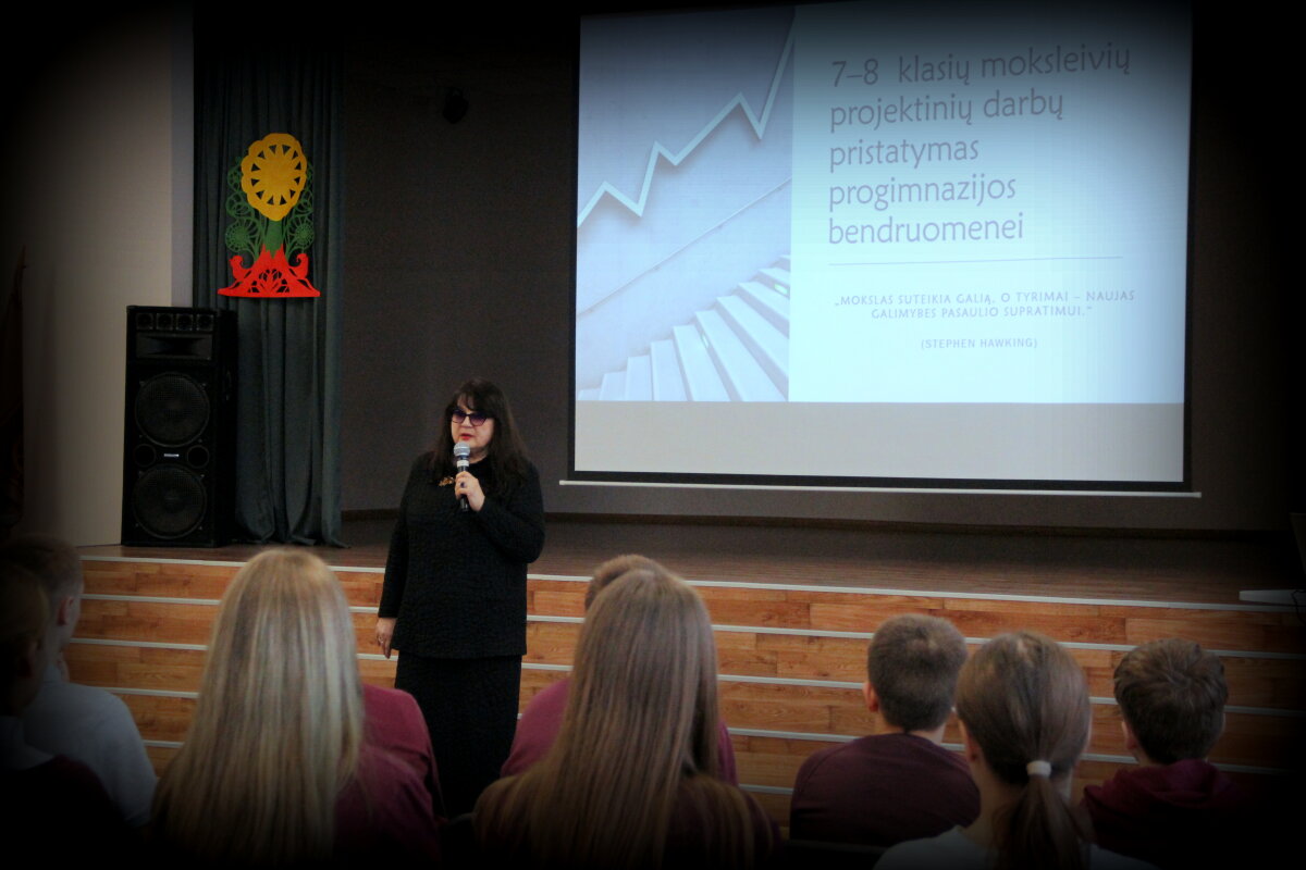 7-8 klasių mokinių projektinių darbų pristatymas progimnazijos bendruomenei