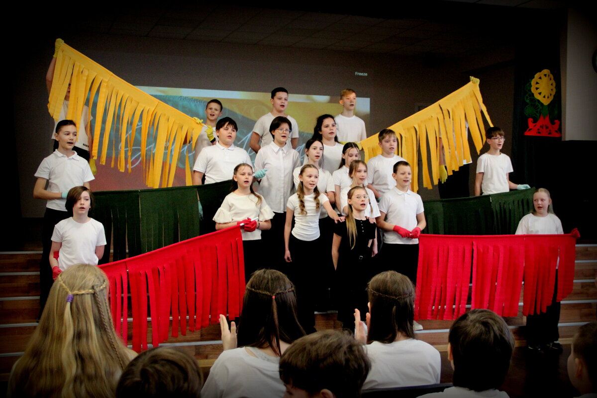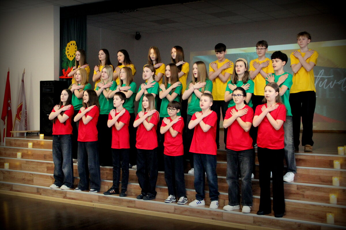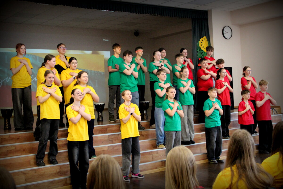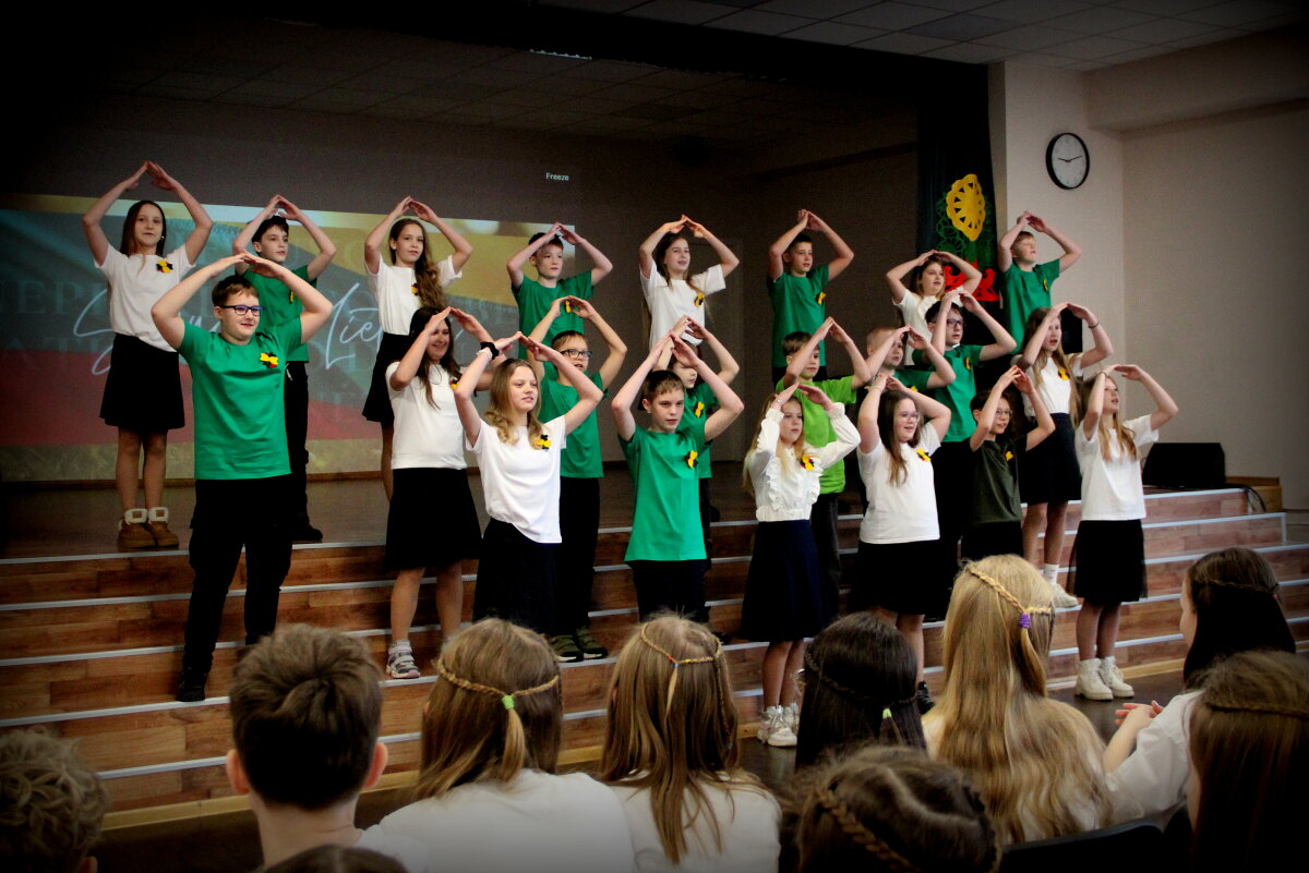 Pirmieji į sceną žengė penktų ir šeštų klasių mokiniai. Jie dovanojo dainas apie Lietuvą, gimtinę ir namus. Skambėjo dainos „Sakale, lėk“, „Mano namai“, „Tu Lietuva – tu mana“, „Aš esu vėliava“ ir kitos. Mokiniai stengėsi ne tik gražiai atlikti kūrinius, bet ir perteikti meilę savo kraštui.