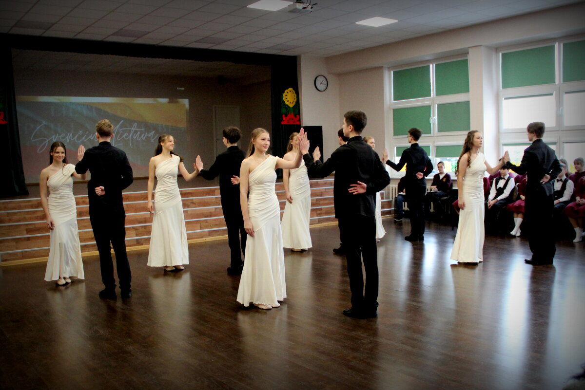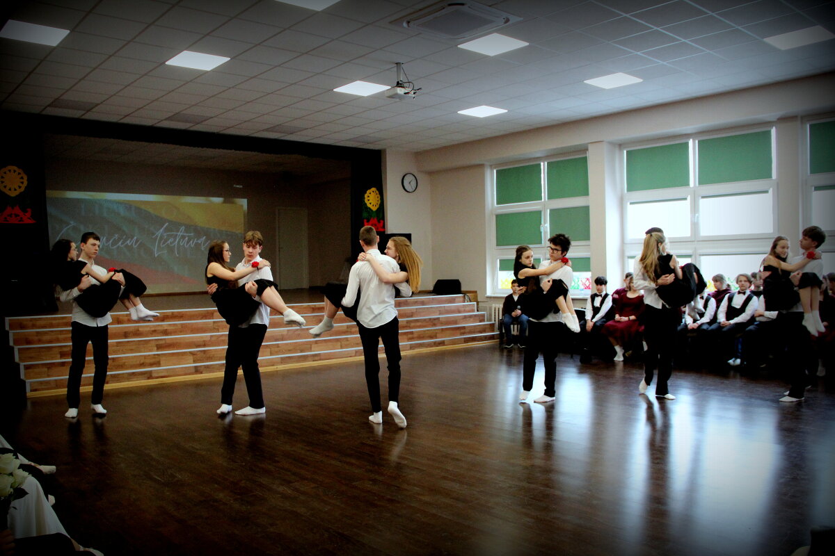 Ypatingą šventės akimirką sukūrė aštuntų klasių mokiniai. Jie žiūrovams padovanojo elegantišką ir jausmingą pasirodymą – šoko valsą. Šis šokis suteikė renginiui iškilmingumo ir sulaukė gausių žiūrovų aplodismentų.