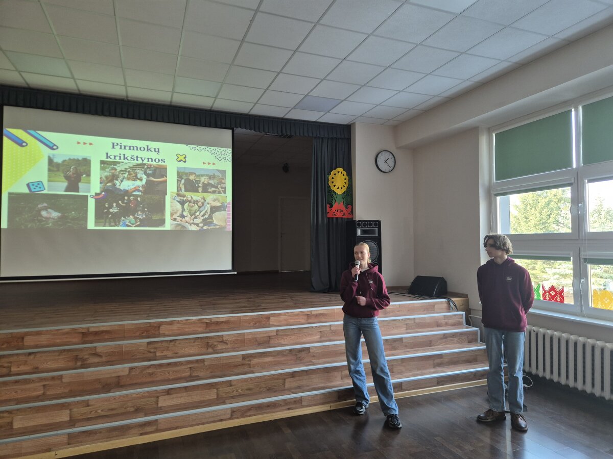 Mūsų aštuntokai turėjo galimybę užduoti jiems rūpimus klausimus apie mokymosi krūvį, pasirenkamuosius dalykus, popamokinę veiklą, bendruomenės tradicijas ir adaptaciją naujoje mokykloje. Tokie susitikimai yra reikšmingi karjeros ugdymo kontekste – jie padeda mokiniams atsakingiau planuoti savo tolesnį mokymosi kelią ir priimti teisingus sprendimus.