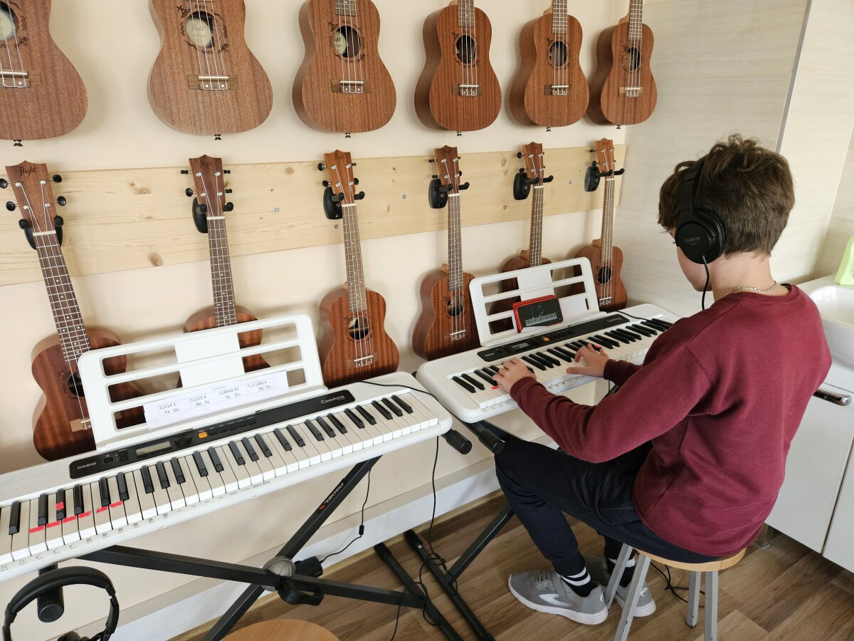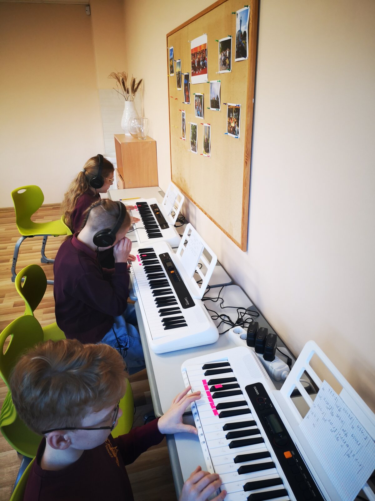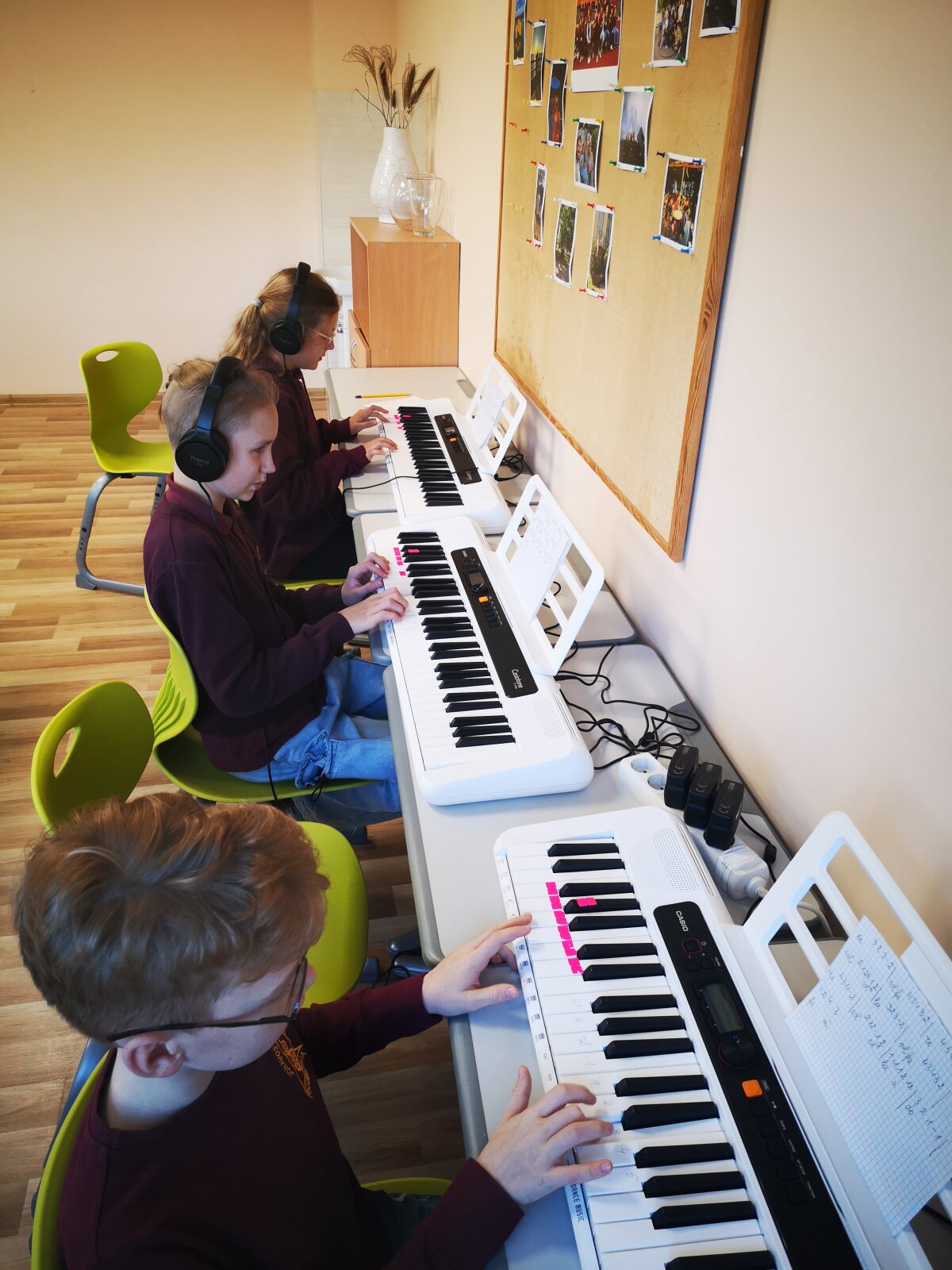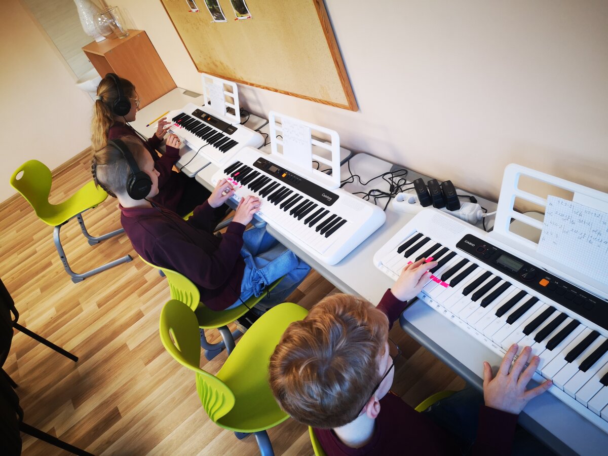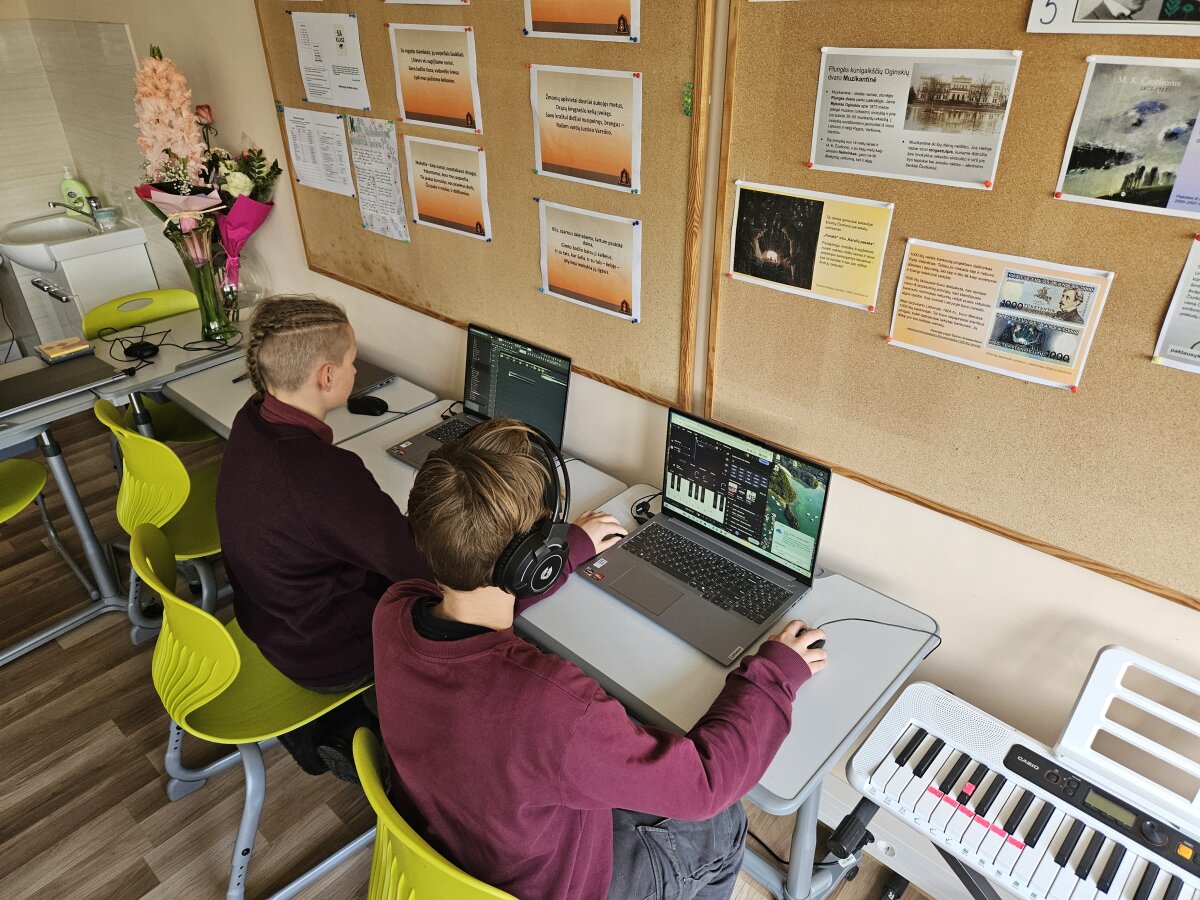 Muzikos ir technologijų būrelis skirtas 5–8 klasių mokiniams, besidomintiems muzika ir šiuolaikinėmis technologijomis. Užsiėmimų metu mokiniai kuria muziką naudodamiesi kompiuterinėmis programomis, mokosi garso įrašymo, redagavimo ir muzikos kūrimo pagrindų. Grodami sintezatoriais mokosi elementaraus melodijos atlikimo, pažengusieji toliau tobulina grojimo įgūdžius, juos derindami su muzikos programavimo galimybėmis. Būrelio tikslas – ugdyti kūrybiškumą, technologinį raštingumą ir gebėjimą derinti meną su naujosiomis technologijomis.