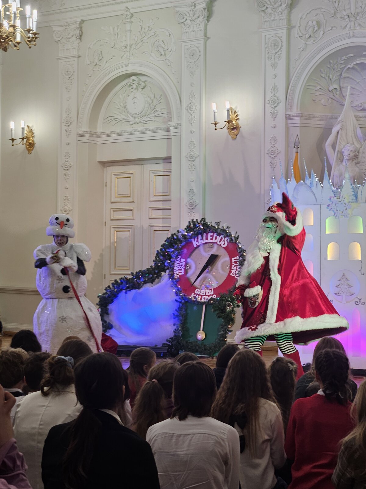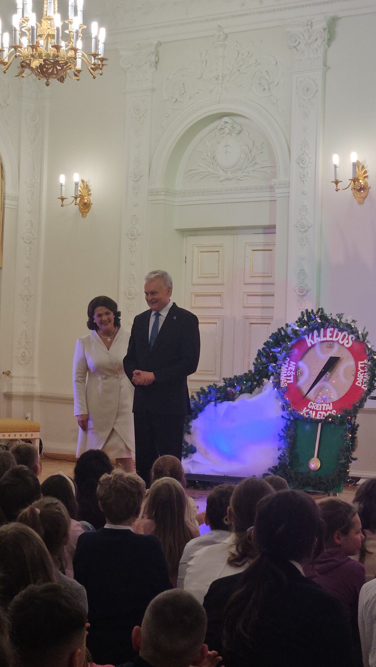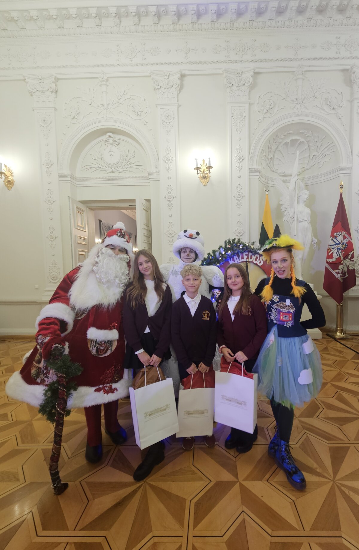 Mokinius šiltai pasitiko Lietuvos Respublikos Prezidentas ir Pirmoji ponia, pakvietę juos žiūrėti nuotaikingo „Raganiukės teatro“ muzikinio spektaklio „Kalėdų senis ir Besmegenis“. Po pasirodymo vaikus pradžiugino ir malonus kalėdinis siurprizas.