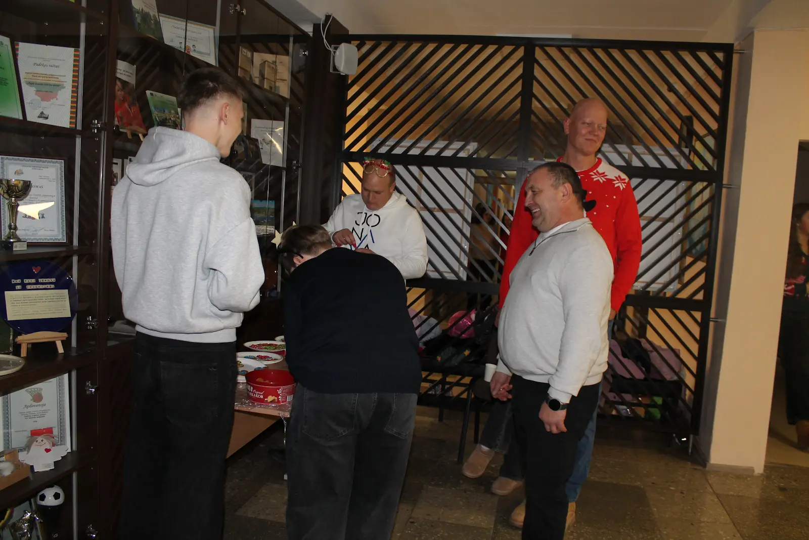 Vakaro metu netrūko ir linksmų bei kūrybiškų užduočių, kurias paruošė Rusnė, Viltė, Jonas ir Raigardas. Mokiniai dekoravo cinamonu kvepiančius sausainius, iš raidžių dėliojo kalėdinius posakius, kūrė ir pristatė pagal nurodytą muziką šokį, atliko įvairias kitas užduotis.
